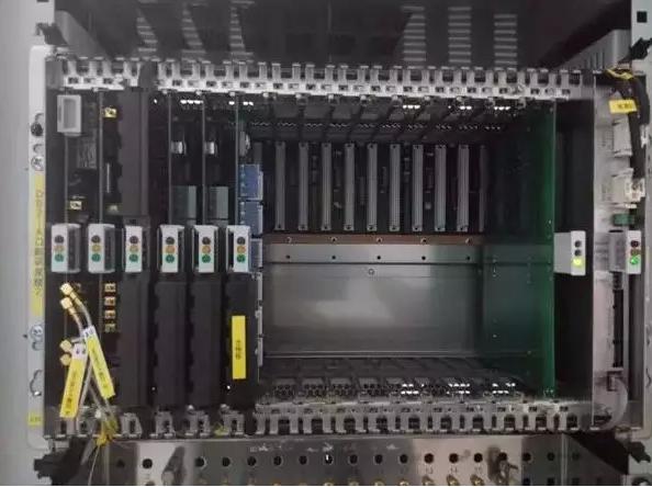 常見(jiàn)的光傳輸設(shè)備長(zhǎng)這樣,上層的一大捆線就是2M線,這是往DDF去的,下一層好多黃色的纖就是尾纖,連接到ODF端子上。