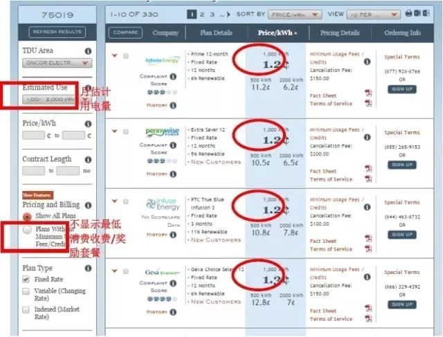 排名靠前的是多個(gè)單價(jià)為1.2~1.3美分/度的售電套餐,真的有這種好事么?
