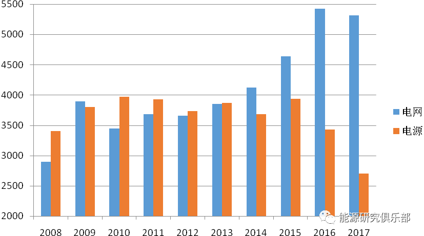 圖21 2008~2017年電網(wǎng)電源投資情況