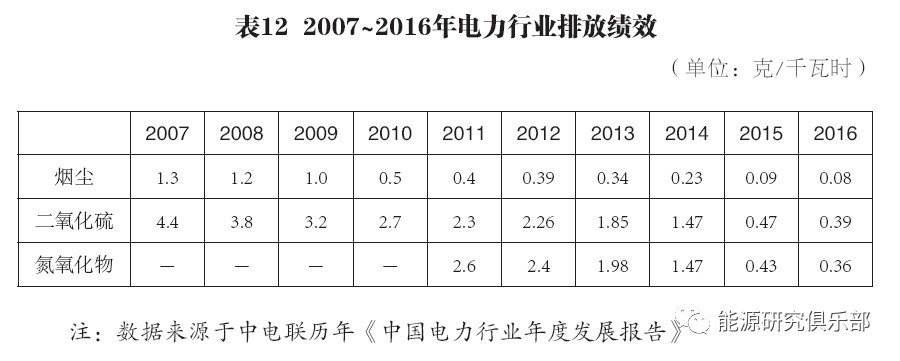 從污染物排放情況來看,下降趨勢(shì)是比較明顯的。煙塵排放總量由2007年的350萬(wàn)噸下降到2016年的35萬(wàn)噸,排放績(jī)效由每千瓦時(shí)1.3克下降到0.08克;二氧化硫排放總量由2007年的1200萬(wàn)噸下降到2016年的約177萬(wàn)噸,排放績(jī)效由每千瓦時(shí)4.4克下降到0.39克;氮氧化物“十二五”期間始有數(shù)據(jù)公布,2012年排放總量948萬(wàn)噸、排放績(jī)效2.4克/千瓦時(shí),快速降至2016年155萬(wàn)噸、0.36克/千瓦時(shí)。