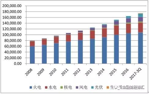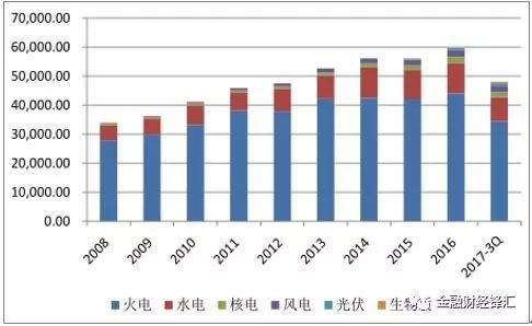 截止到2017年三季度末,我國煤電裝機10.81億千瓦,水電3.39億千瓦,核電3582萬千瓦,風電1.57億千瓦,光伏1.2億千瓦,生物質1423萬千瓦;火電裝機占全部裝機容量的61.87%,水電裝機占19.4%,核電占2.05%,風電占9.0%,光伏占6.87%,生物質占0.81%。從發(fā)電量來看,2017年前三季度,我國煤電發(fā)電3.45萬億度,水電8147億度,核電1834億度,風電2128億度,光伏857億度,生物質568億度。煤電發(fā)電量占比高達71.84%,水電占16.95%,核電占3.82%,風電占4.43%,光伏占1.78%,生物質占1.18%。