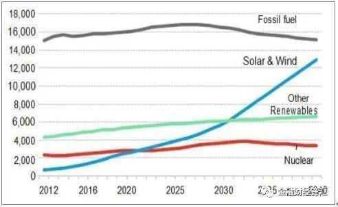 太陽能和風電將主宰未來電力系統(tǒng)。太陽能發(fā)電及陸上風電成本將在2040年前分別進一步下降66%及47%,可再生能源將在2030年前實現(xiàn)比大多數(shù)化石能源電廠更低的運營成本。到2040年,風電和太陽能將占全球裝機總容量的48%及發(fā)電量的34%。報告預計新增可再生能源的投資總額將在2040年前達到7.4萬億美元,占全球新增發(fā)電投資總額10.2萬億美元中的72%。其中,太陽能投資2.8萬億美元,風電投資3.3萬億美元。
