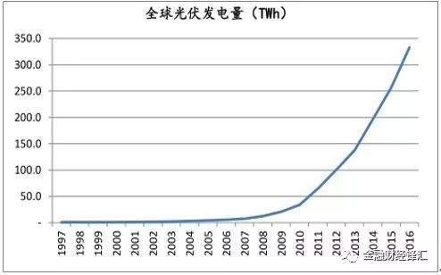 新能源發(fā)電的快速崛起,與世界各國日益重視環(huán)境保護,倡導節(jié)能減排密切相關。風電、光伏作為最為清潔的能源,受到全球青睞,各國紛紛出臺了鼓勵新能源發(fā)展的措施,促進了風電、光伏等新能源的發(fā)展。同時,由于技術的進步,新能源發(fā)電的成本也快速下降,是其崛起的另一重要推動力。從1997年-2016年這二十年間,全球新能源發(fā)展迅猛。風電裝機從7.64GW增長到468.99GW,光伏裝機從0.23GW增長到301.47GW,分別增長了60倍和1284倍。風電,光伏發(fā)電量快速增長,分別從1997年的12TWh、0.8TWh增長到2016年的959.5TWh、331.1TWh,風電發(fā)電量增長了79倍,光伏發(fā)電量增長了439倍,已經(jīng)成為電力供應中不可忽視的電源。