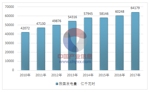 2010-2017年我國發(fā)電量走勢