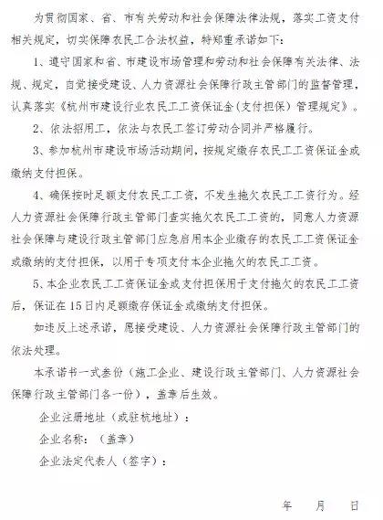 杭州市建設(shè)施工企業(yè)履行農(nóng)民工工資支付保證制度承諾書