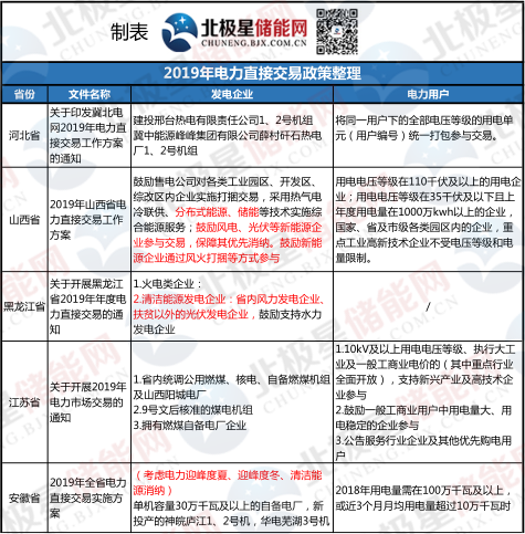 不僅是山西省,近期多個省份發(fā)布了2019年電力市場交易通知,其中都有明確提到新能源發(fā)電可作為發(fā)電企業(yè)參與電力交易,北極星儲能網(wǎng)梳理了這些電力交易文件,詳表如下: