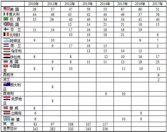 2013~2017年主要國(guó)家的電力生產(chǎn)量(單位:TWh)