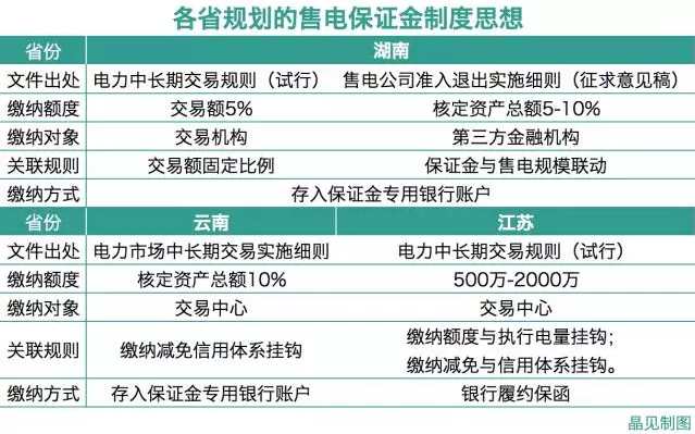 除了云南,江蘇所設(shè)想的制度則是目前集有關(guān)售電領(lǐng)域保證金制度的大成者,將湖南省與云南省的制度思想融合,同時(shí)也不違背國(guó)家清退保證金的精神,因?yàn)槠渌杉{的擔(dān)保方式是銀行保函,符合工作精神中的轉(zhuǎn)換保證金繳納方式。