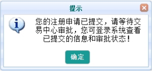 (三 ) 注冊信息提交后由交易中心進(jìn)行審批, 審批通過后將生效納入交易平臺市場主體 , 注冊信息必須與提交的紙質(zhì)版材料一致,否則將無法通過審批。