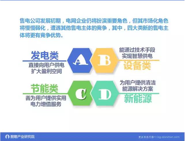 據(jù)媒體報(bào)道,電力體制改革6個(gè)配套文件即將出臺(tái),售電側(cè)改革試點(diǎn)進(jìn)入倒計(jì)時(shí)。新電改會(huì)帶來(lái)很多巨大商機(jī),比如售電制改革,鼓勵(lì)社會(huì)資本市場(chǎng)進(jìn)入,包括配電領(lǐng)域混合所有制改革。所以從售電公司角度看,更多的關(guān)注電