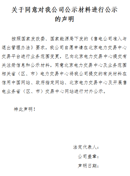 5、關(guān)于同意對(duì)我公司公示材料進(jìn)行公示的聲明。(見(jiàn)附件6)