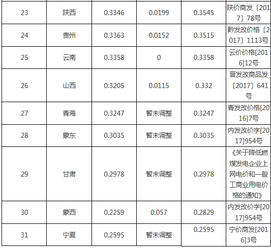 附表1:全國燃煤發(fā)電標桿上網(wǎng)電價