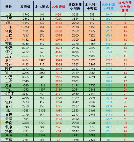 附表2:2017年1-9月分省裝機及火電利用小時數(shù)綜合排名情況