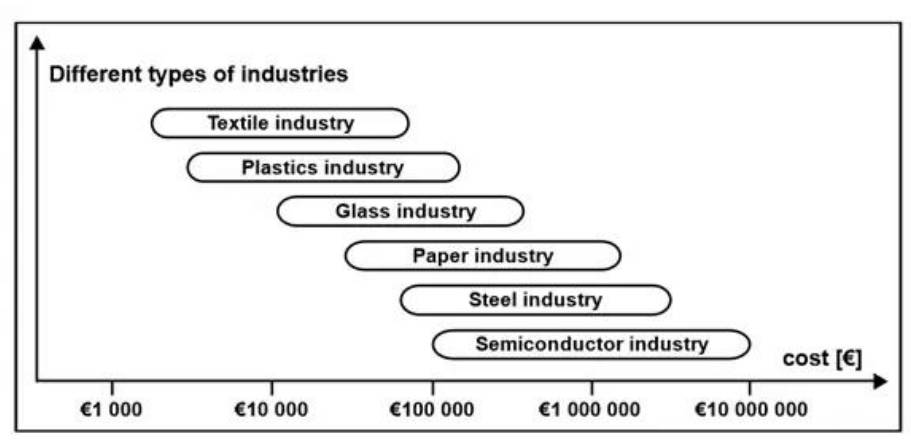 如果電能質(zhì)量出現(xiàn)問題只是損壞了一只燈泡,這種情況大家一般都不會在意,真正在意的是電能質(zhì)量問題給企業(yè)、用戶帶來了較大的損失。上面的表格是國外同行總結(jié)出來的,當然也不是非常準確,個別案例會比表格里面的損失多得多,有些可能還達不到這個損失。這里主要統(tǒng)計了紡織行業(yè)、塑料行業(yè)、玻璃加工行業(yè)、造紙業(yè)、鋼鐵企業(yè)還有半導體制造行業(yè)等,半導體制造行業(yè)對電能質(zhì)量問題最為關(guān)注,因為電能質(zhì)量對這個行業(yè)的損失最大。