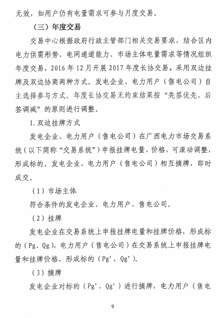 近日,廣西電力交易中心發(fā)布2017電力市場化交易實施方案和實施細則的通知,規(guī)定售電公司可代理電力用戶(包括試點園區(qū)內(nèi)用戶)向發(fā)電企業(yè)購電。初期,單個售電公司年度長期協(xié)議交易電量不得超過6億千瓦時(不含試點
