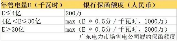 根據(jù)我們測算,對于一個年售電量在10億的普通售電公司來說,沒有授信,履約保函一年需要凍結(jié)資金500萬,手續(xù)費15萬左右。廣東某售電公司老總:我那天開車問過我們當(dāng)?shù)氐乃秀y行,這個保證金必須是全額繳納,是很