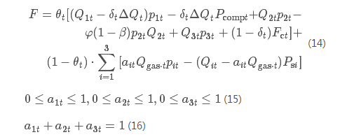 式中:θt為競價成功的概率;Q1t 、Q2t、Q3t 為競價前實施中斷電價、高可靠性電價和階梯電價的用戶分別所需的現(xiàn)貨市場電量;δt為用戶執(zhí)行中斷合同的概率;ΔQt為中斷量;ΔQtmax為中斷的上限;Qgas˙t