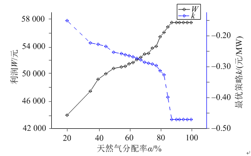 圖10 天然氣分配率與最優(yōu)策略的關系