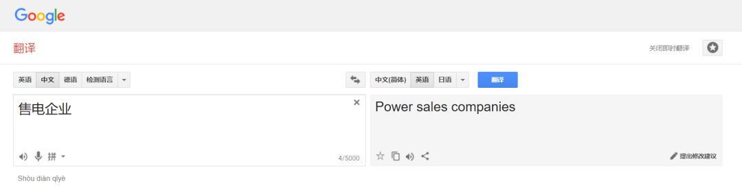 不過(guò),我們還有Power Broker Ltd這個(gè)備選翻譯,由圖中翻譯顯示,主要意思是經(jīng)紀(jì)人、中間商或者掮客,該老師向晶見(jiàn)表示,這符合絕大多數(shù)售電公司特征,還起到一語(yǔ)雙關(guān)的作用。晶見(jiàn)想了想,好像也是這個(gè)道理,畢竟很多售電公司都是做一個(gè)掮客,給電廠或者一些大的售電公司做代理,提供信息,本身不參與主要的交易過(guò)程,更不提給用戶(hù)承擔(dān)偏差之類(lèi)的風(fēng)險(xiǎn)了,就賺個(gè)辛苦費(fèi)。