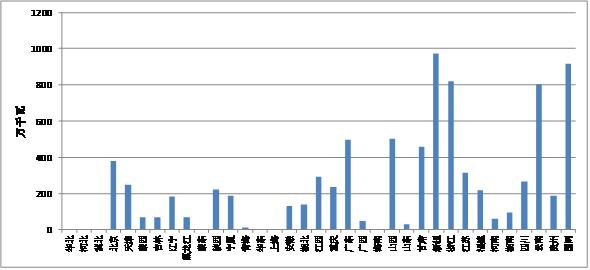2014年,全國發(fā)電權交易電量1237.5億千瓦時,其中江蘇、浙江、遼寧的發(fā)電權交易電量位居全國前三,具體見圖1-5。