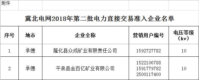 附件:冀北電網(wǎng)2018年第二批電力直接交易準(zhǔn)入企業(yè)名單