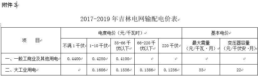 3.2017-2019年吉林電網(wǎng)輸配電價表