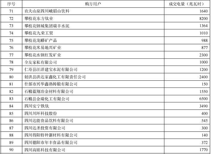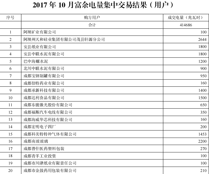 四川2017年10月份月度直購電及富余電量交易結(jié)果已公布