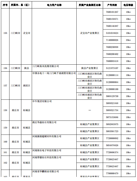 河南新公示第六批212家電力用戶(附名單)