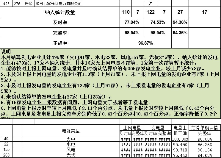 新疆2017年12月496家發(fā)電企業(yè)上報(bào)電量及結(jié)算單確認(rèn)情況