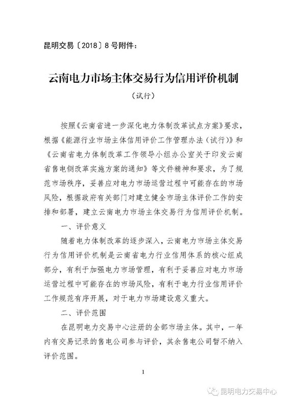 云南電力市場(chǎng)主體交易行為信用評(píng)價(jià)機(jī)制發(fā)布 已擴(kuò)展至全市場(chǎng)主體