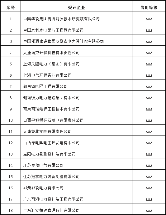 電力行業(yè)2017年信用企業(yè)評(píng)價(jià)結(jié)果公示:101個(gè)AAA級(jí)電力企業(yè)