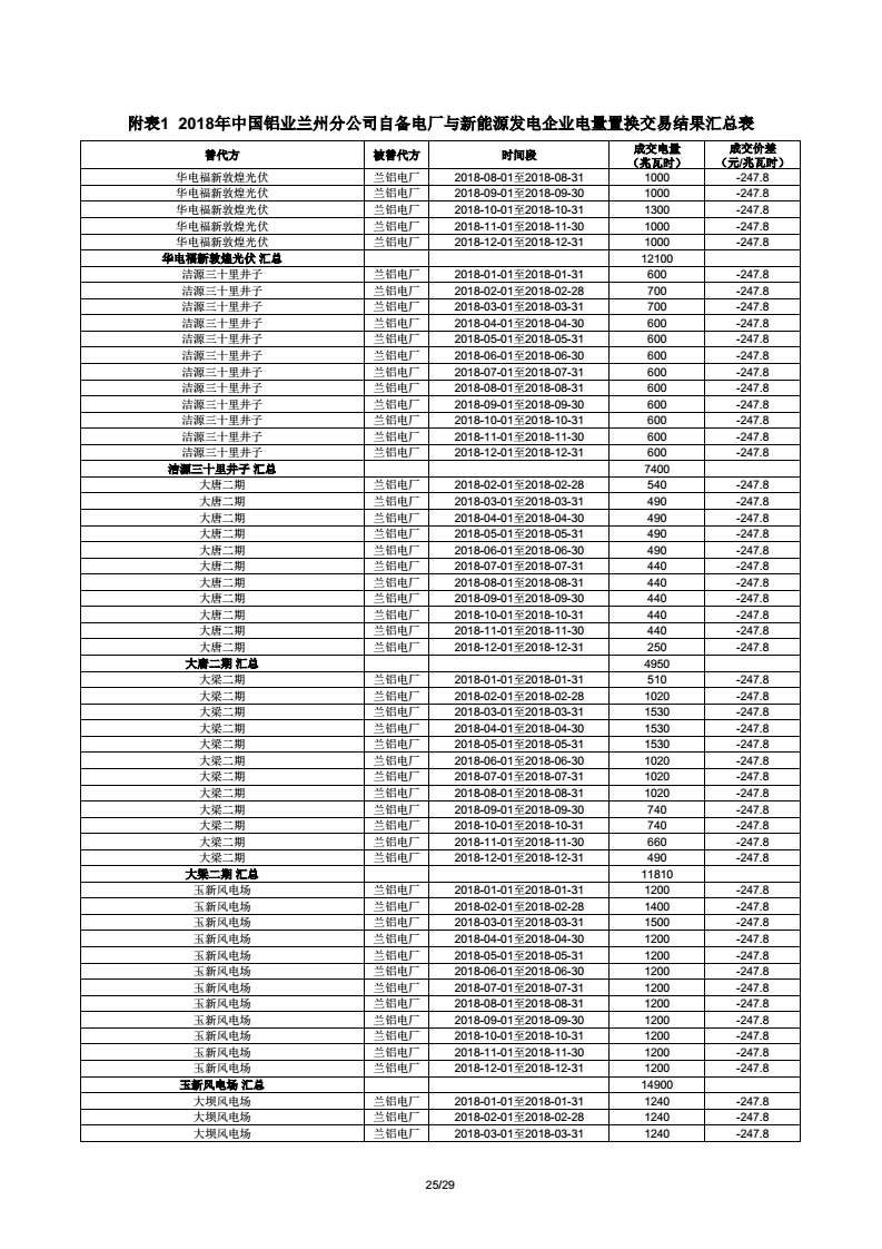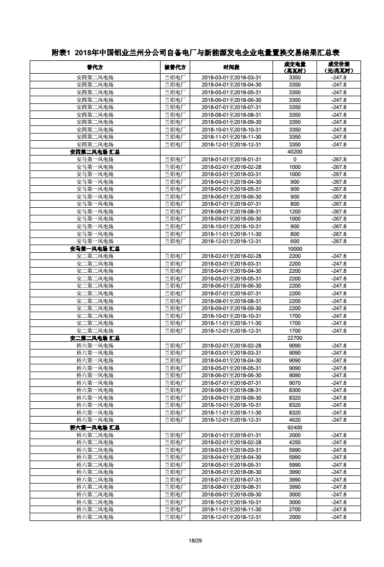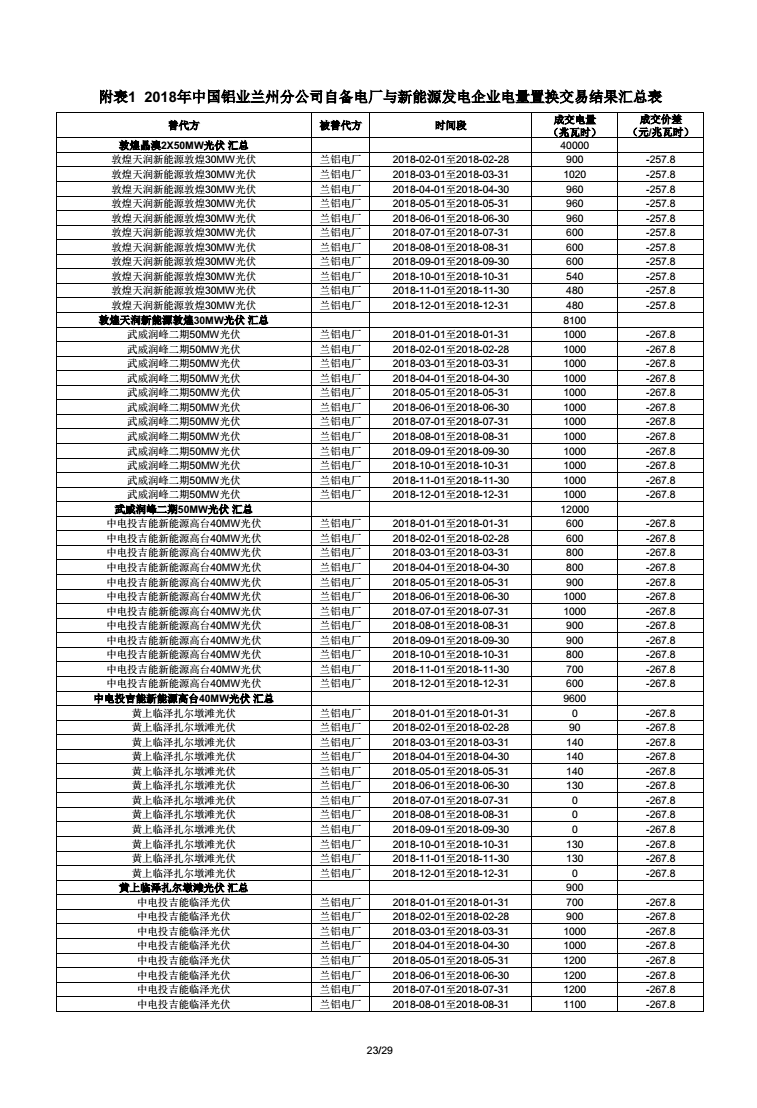 《2018年甘肅蘭鋁、金川集團、玉門石油自備電廠與新能源發(fā)電企業(yè)電量置換交易結果公告(2018年1月23日)》:總成交量24.55億千瓦時