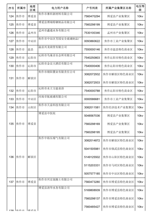 2018年河南省新增942家電力用戶公示名單(第三批)