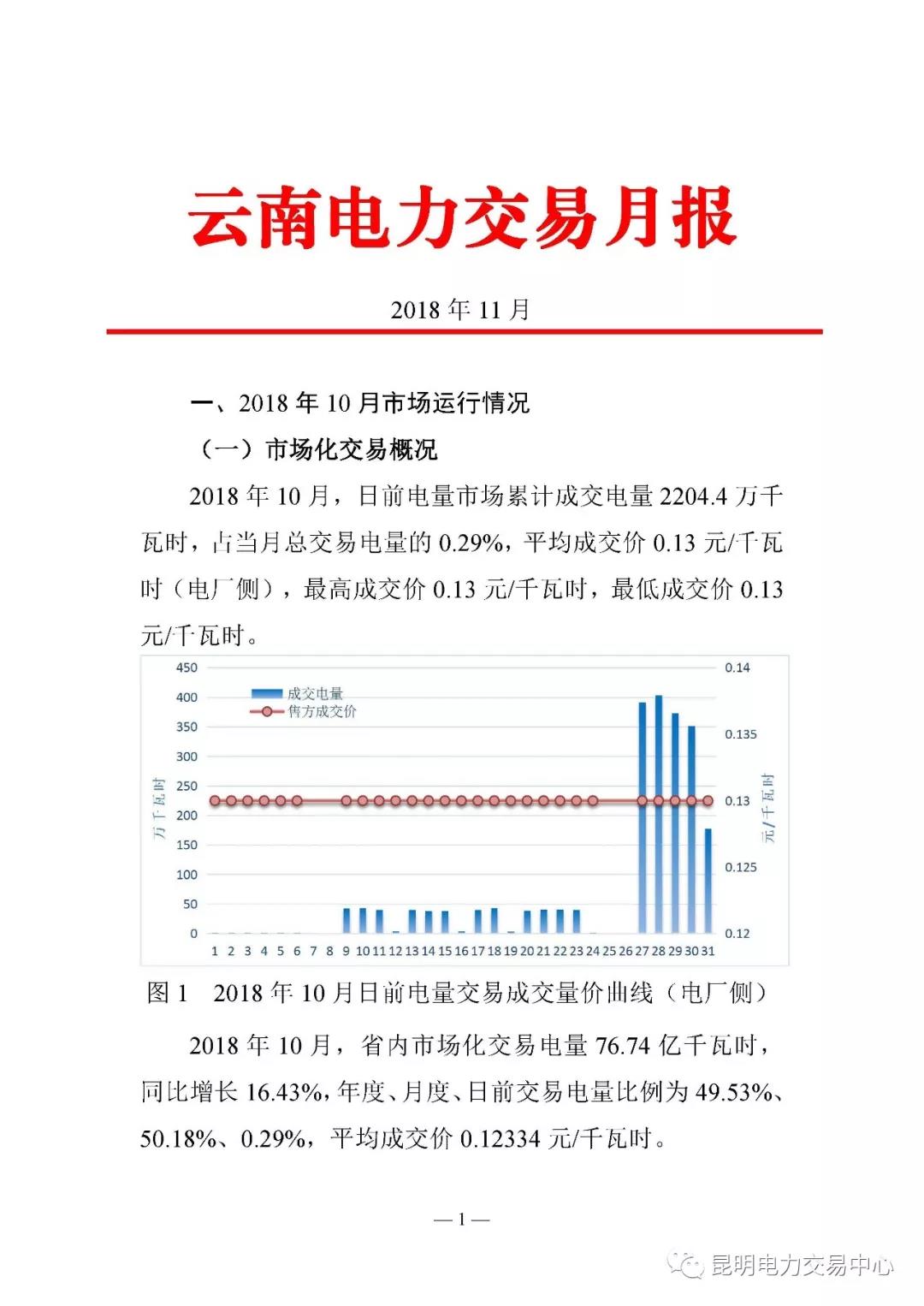 昆明電力交易中心日前發(fā)布了《云南電力交易月報(bào)(2018年11月)》,2018年11月省內(nèi)市場化交易電量75.27億千瓦時(shí)(不含11月日前交易),同比增長14.46%。11月,共有48家電廠、82家用戶(售電公司)通過年度雙邊協(xié)商方式協(xié)商電量33.48億千瓦時(shí)。