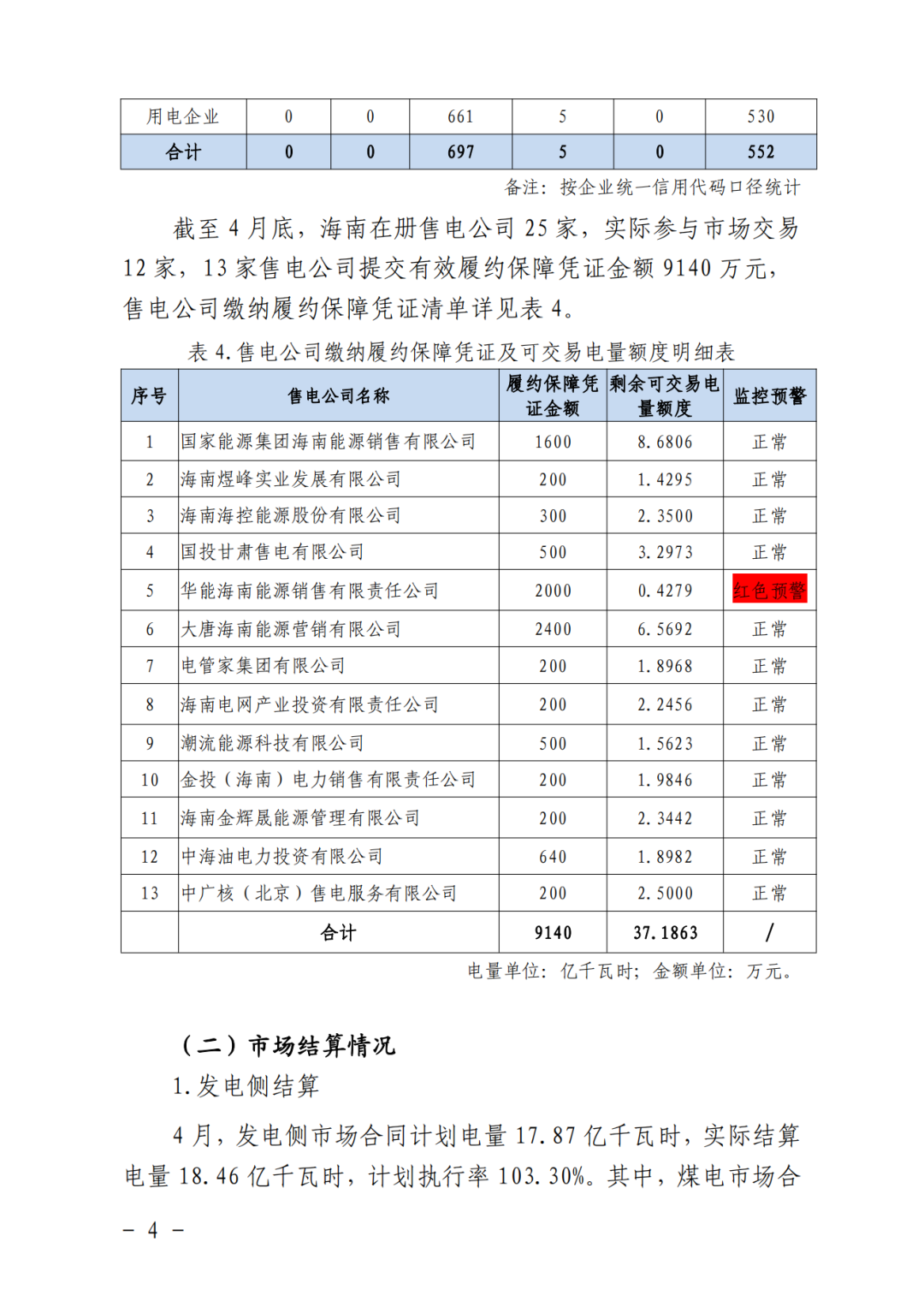 4月份(交易標(biāo)的月),海南省內(nèi)市場(chǎng)化交易電量 17.89 億千瓦時(shí),其中,直接交易成交電量 7.14 億千瓦時(shí),同比增加 72.42%。平均成交價(jià) ...