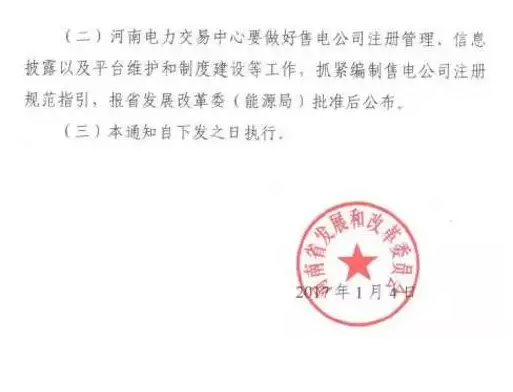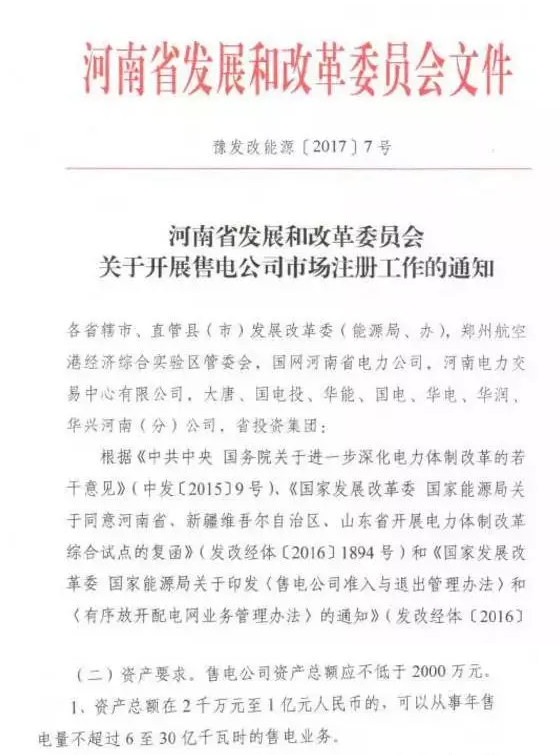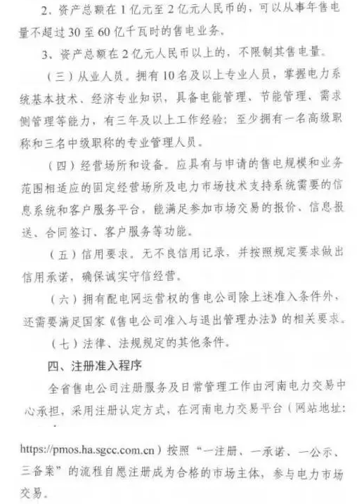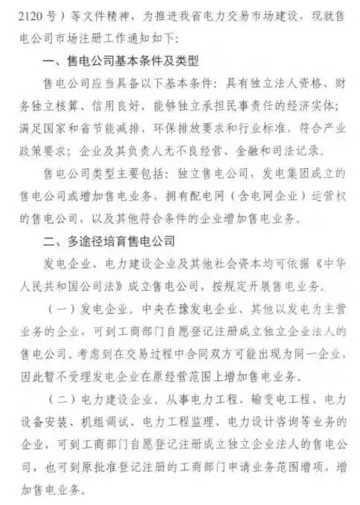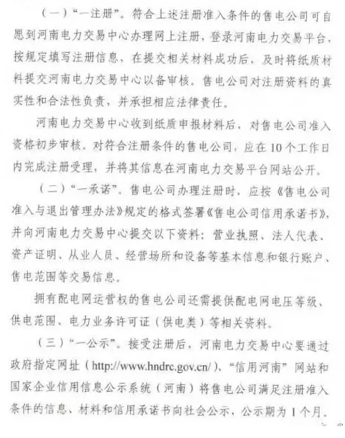 關(guān)于展開售電公司市場注冊工作的通知,明確了河南注冊主體的資產(chǎn)要求、工作人員、辦公要求、注冊流程及資料等,要多途徑培育售電公司。