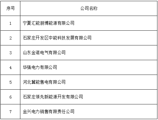 2017年6月,新疆電力交易中心受理北京推送的7家售電公司,公示期滿。名單如下: