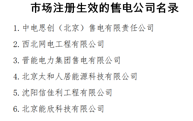 根據(jù)國家發(fā)改委、國家能源局《售電公司準(zhǔn)入與退出管理辦法》(發(fā)改經(jīng)體〔2016〕2120號)的有關(guān)規(guī)定,中電思創(chuàng)(北京)售電有限責(zé)任公司等6家售電公司在青海電力交易中心有限公司的注冊手續(xù)自動生效。