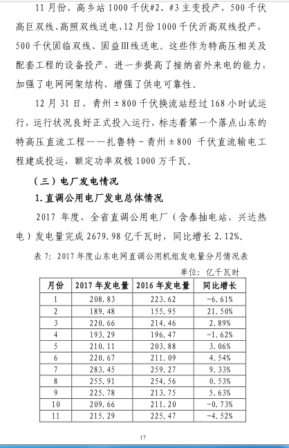 山東電網(wǎng)2017年度暨四季度電力市場(chǎng)交易信息報(bào)告:全社會(huì)用電量完成5430.16億千瓦時(shí)
