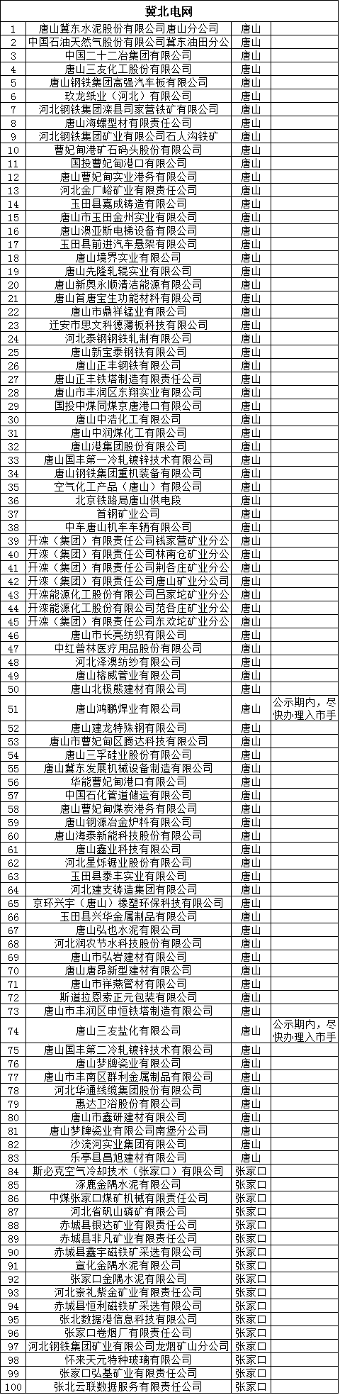 關(guān)于對(duì)河北省2018年擬參與直接交易的電力用戶名單及取消交易資格的電力用戶名單的公示