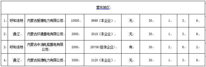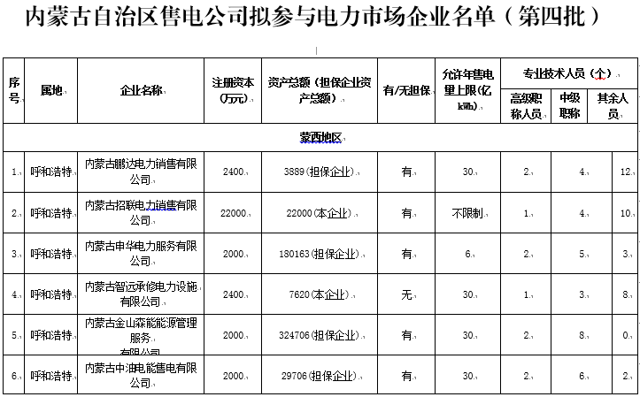 內(nèi)蒙古自治區(qū)經(jīng)濟和信息化委員會關于售電公司參與電力市場企業(yè)名單的公示