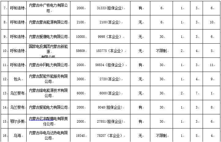 內(nèi)蒙古21家售電公司參與電力市場企業(yè)公示名單