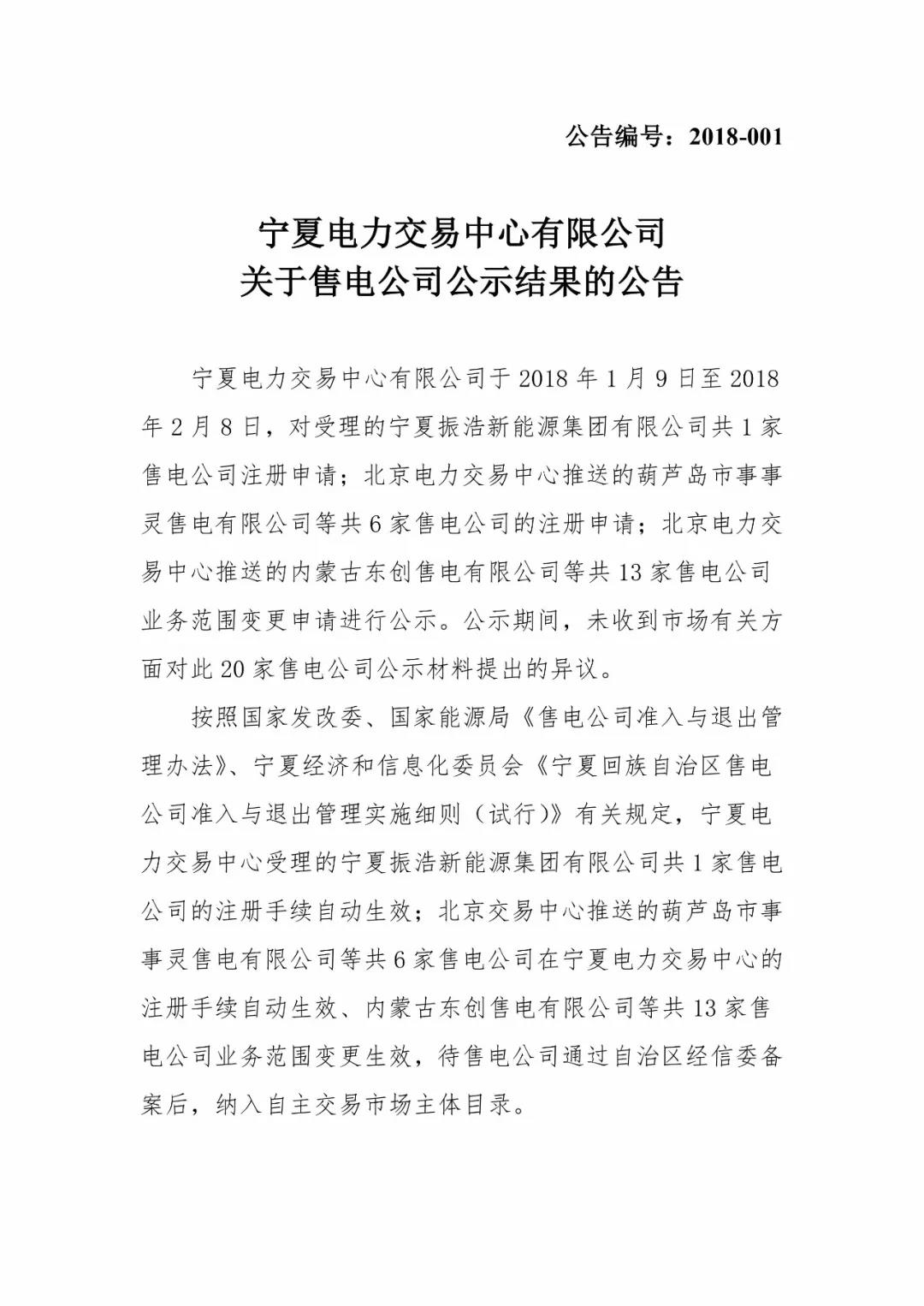 寧夏新增20家售電公司