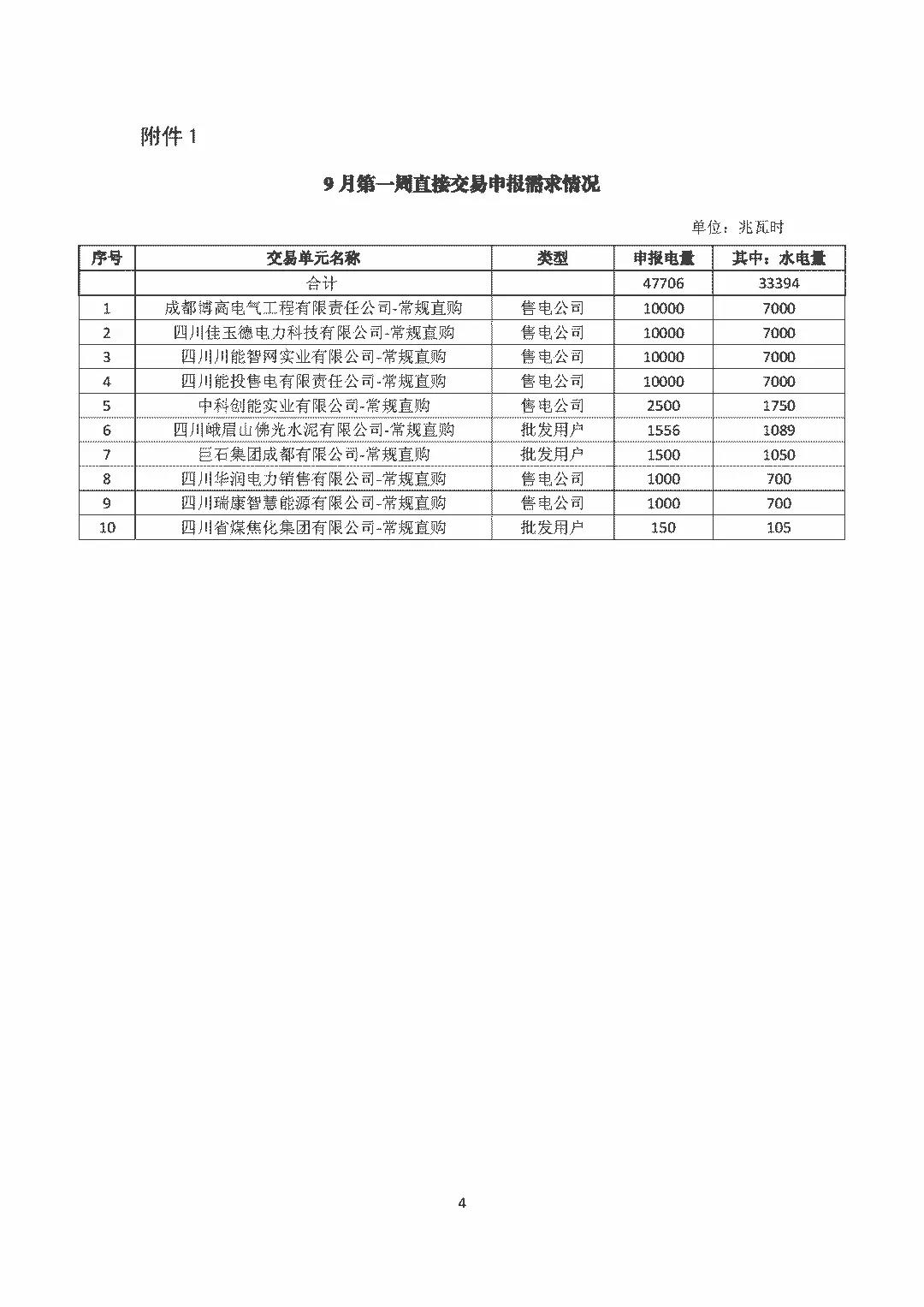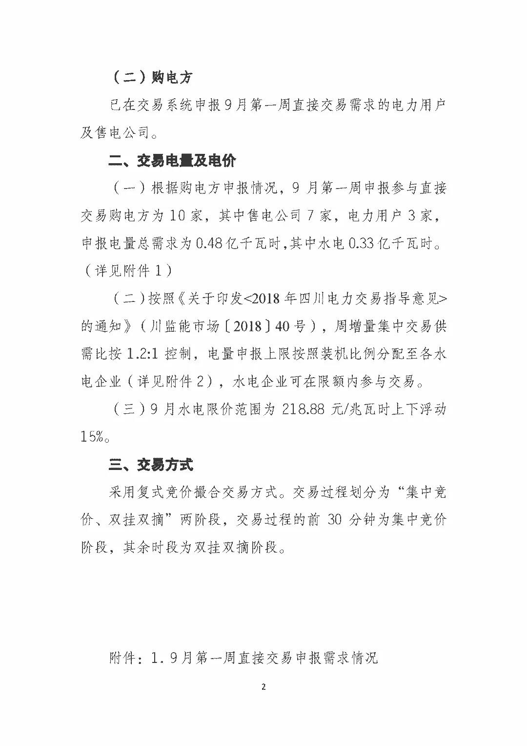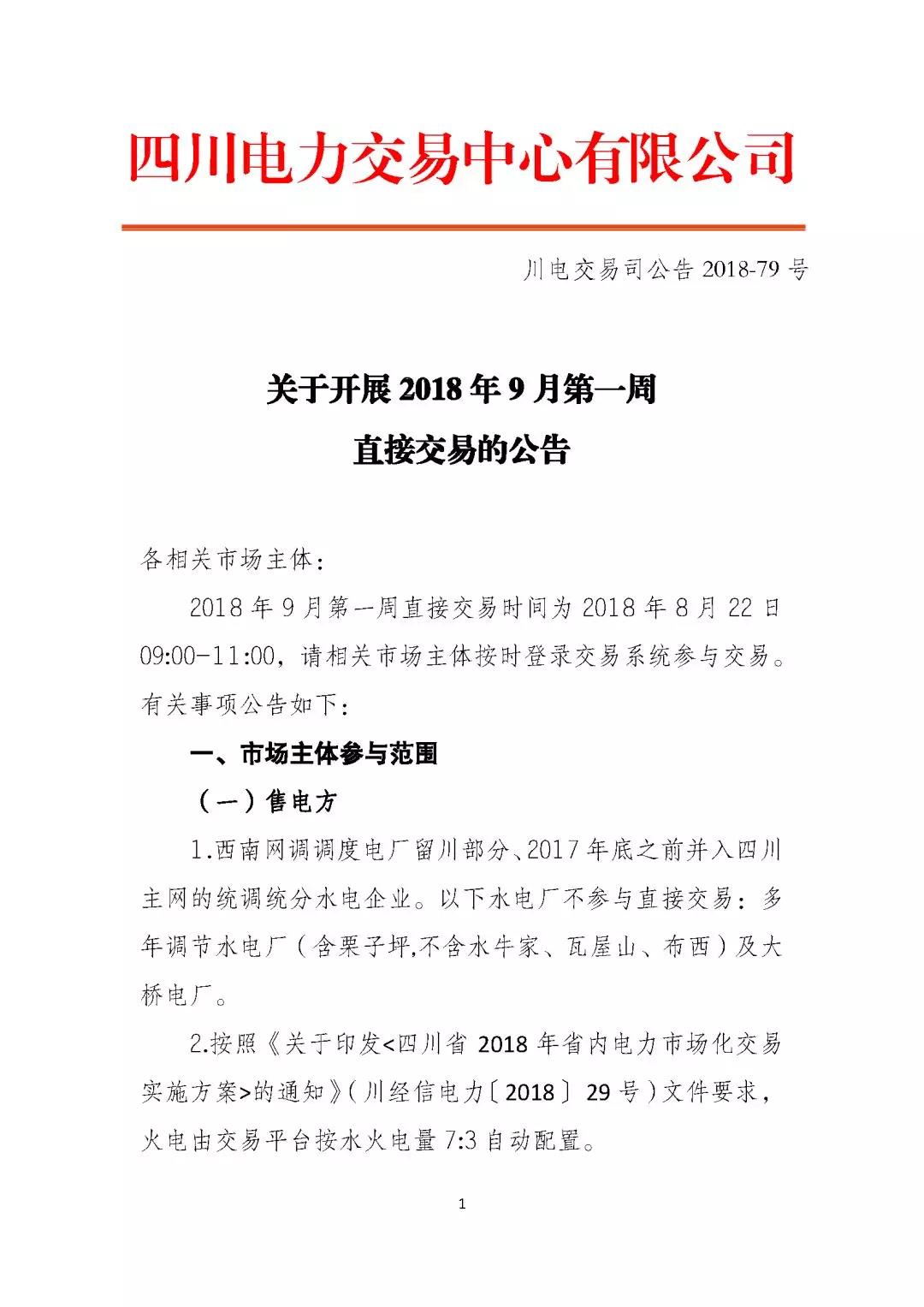 公告 | 四川關(guān)于開(kāi)展2018年9月第一周直接交易的公告