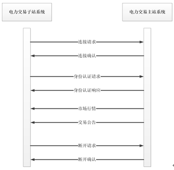 Ø 電力交易子站系統(tǒng)向電力交易主站系統(tǒng)發(fā)出連接請求,在得到連接確認后發(fā)出身份認證請求;