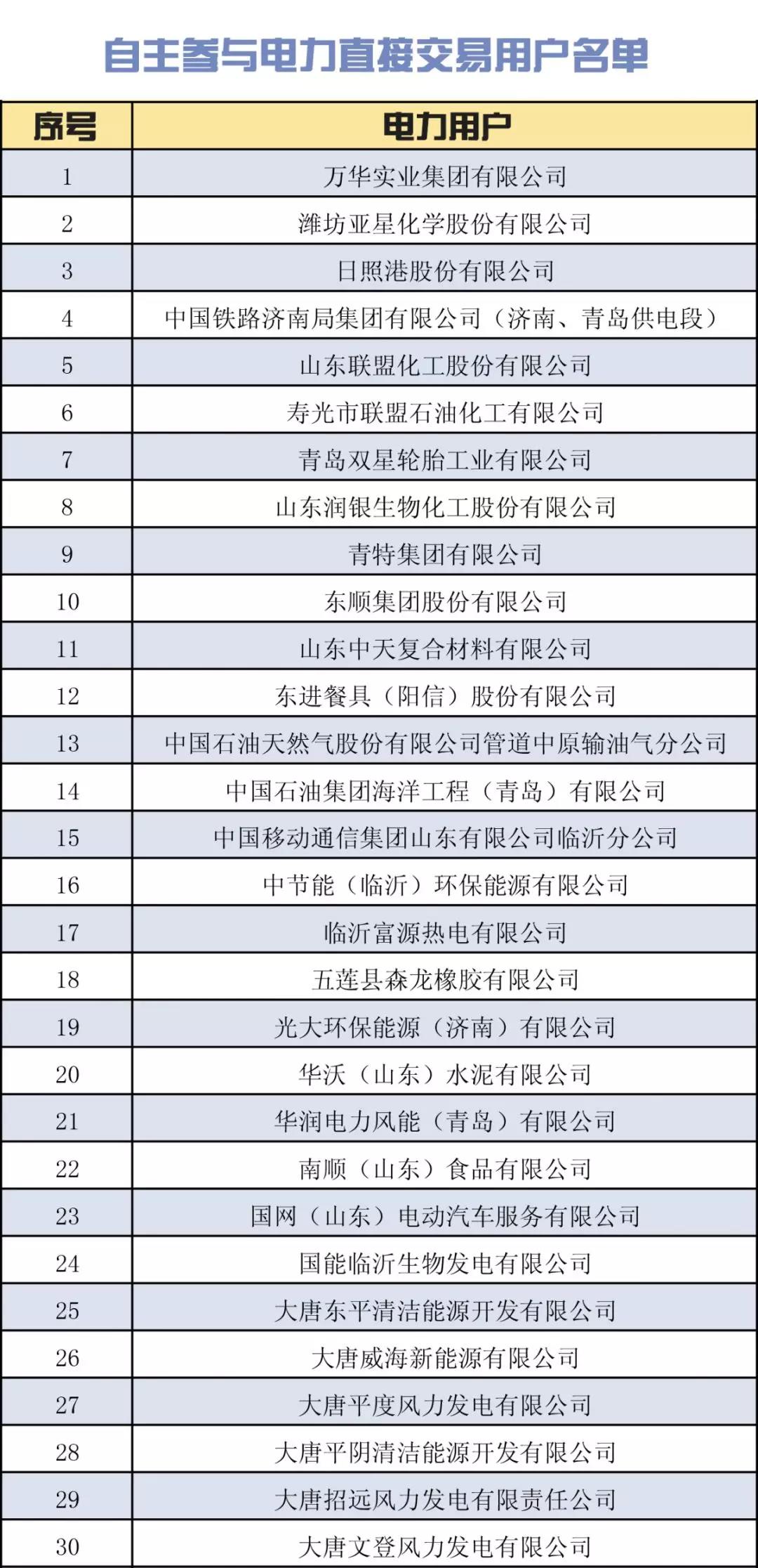 購電方:在山東電力交易中心網(wǎng)站公示通過、完成注冊且已提交有效2018年跨省區(qū)電力用戶代理協(xié)議、省內(nèi)電力用戶代理協(xié)議的售電公司;省經(jīng)信委準(zhǔn)許并在山東電力交易中心網(wǎng)站完成注冊、可自主參與2018年跨省區(qū)電力直接交易的電力用戶和省內(nèi)電力直接交易的電力用戶(詳見下表)。