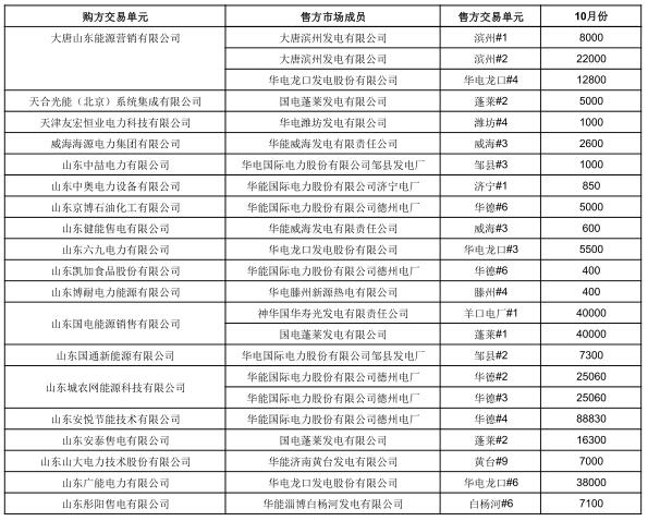 山東2018年10月電力直接交易(雙邊協(xié)商):交易電量153.59萬(wàn)兆瓦時(shí)