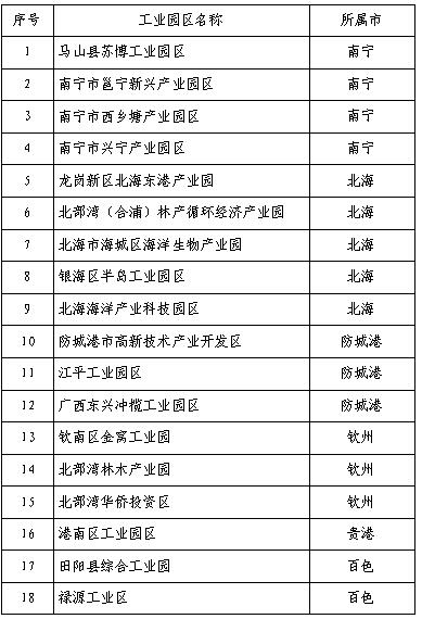 全區(qū)自治區(qū)級(jí)以下工業(yè)園區(qū)名單