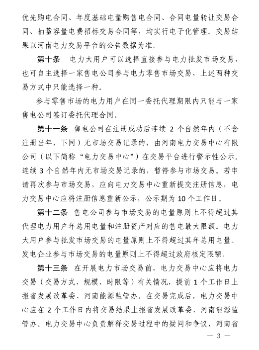 河南省日前發(fā)布了《河南省電力市場(chǎng)交易規(guī)則(試行)》