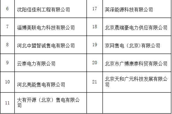 冀北新公示22家售電公司